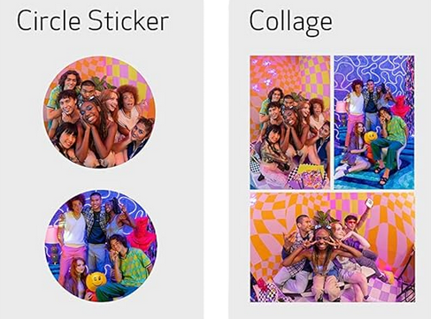 Canon Mini Print App: Enables photo customization (frames, stickers, filters, text) and collage/tile printing directly from a smartphone.