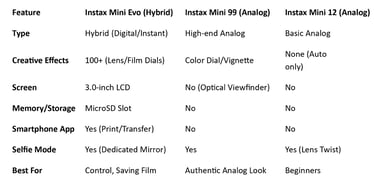 Just in case if you want to find a right INSTAX for you, here is the comparison table: