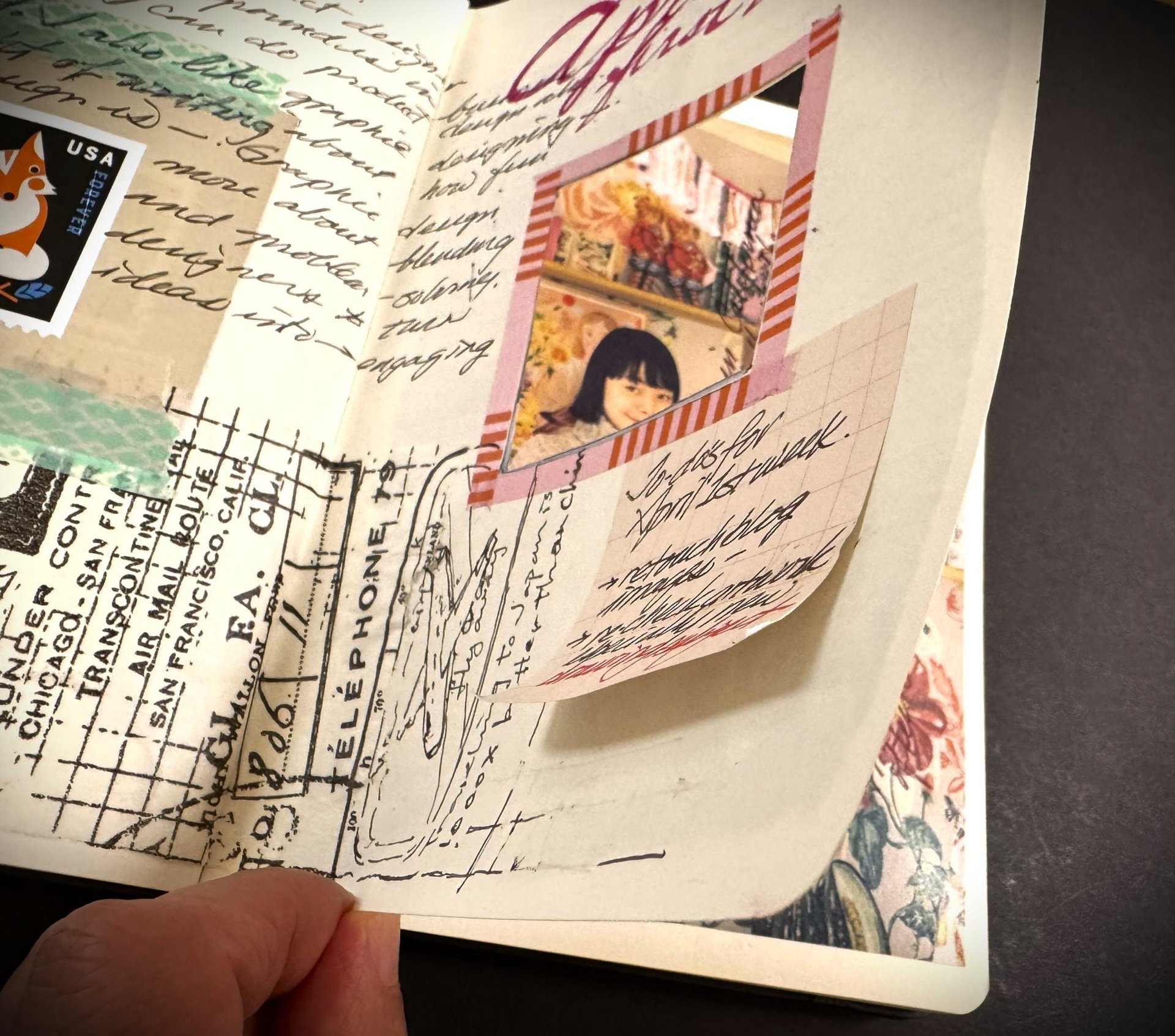 I watched a few journaling experts show off different techniques on their pages. One that caught my eye was cutting or trimming pages to link two or three together, making a connected artistic series.