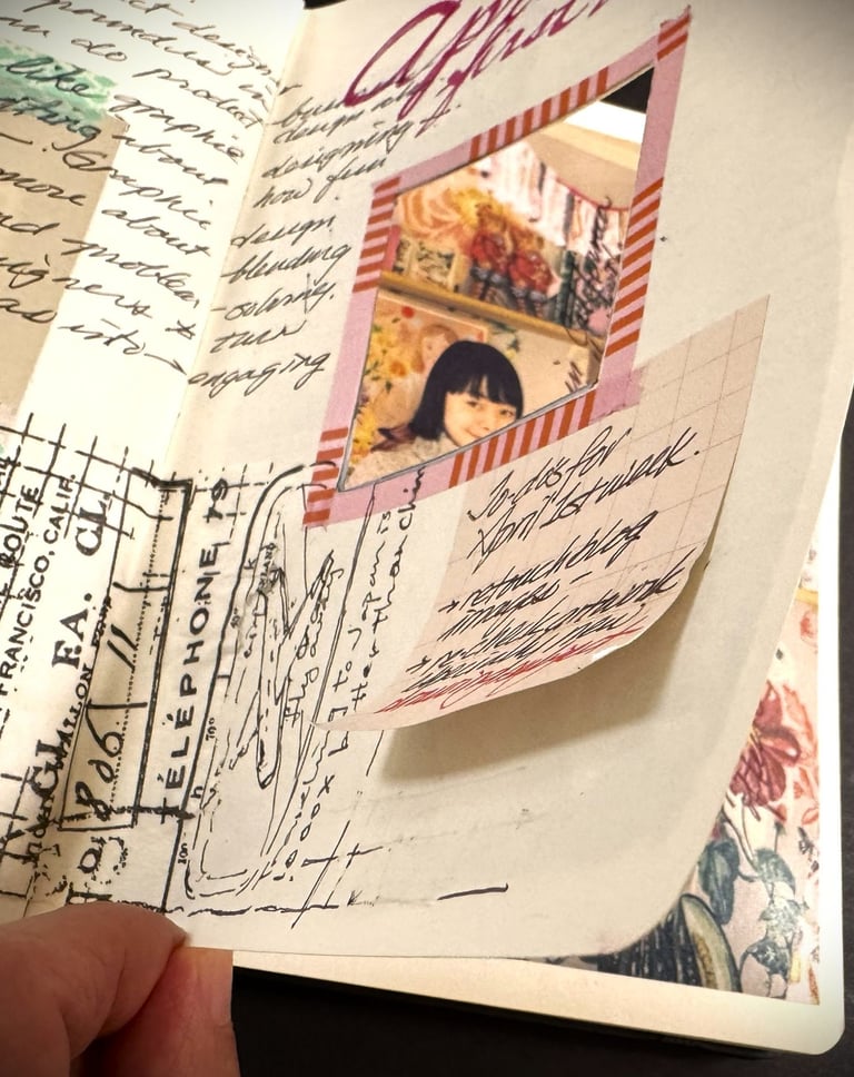 I felt that trimming the page itself is an engaging way to manage and expand the limited space of the journal pages. Trimming enables you to add different materials as an extension of the page, creating a unique expression that reflects your personal style.