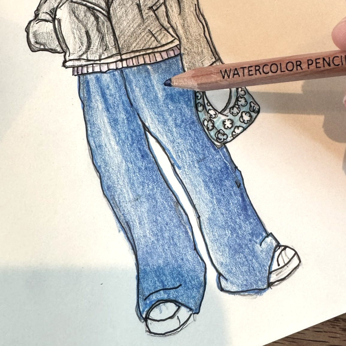 For this reason, I usually bring just watercolor pencils, a waterbrush pen, and my sketchbook to the coffee shop for quick drawings, instead of carrying the whole gears like brushes, paint tubes, palettes, and mixing trays. This way is easier and makes my work feel more natural and relaxed than traditional methods.