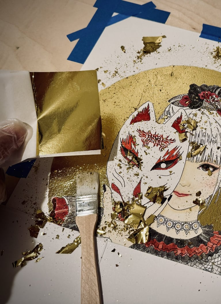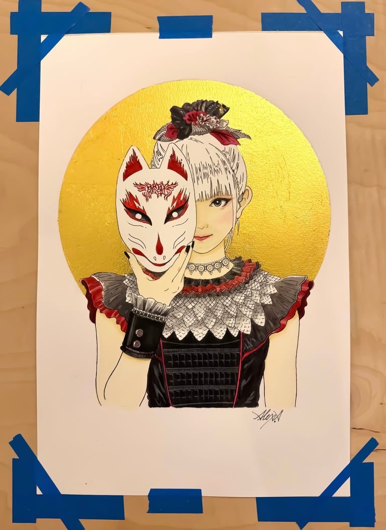 I used gold leaf (foil) to create a golden circle behind her in the drawing to show the 'queen-like' aura she has during BABYMETAL’s live shows. It’s my way of showing how much she is admired as a strong and influential vocalist in modern rock.